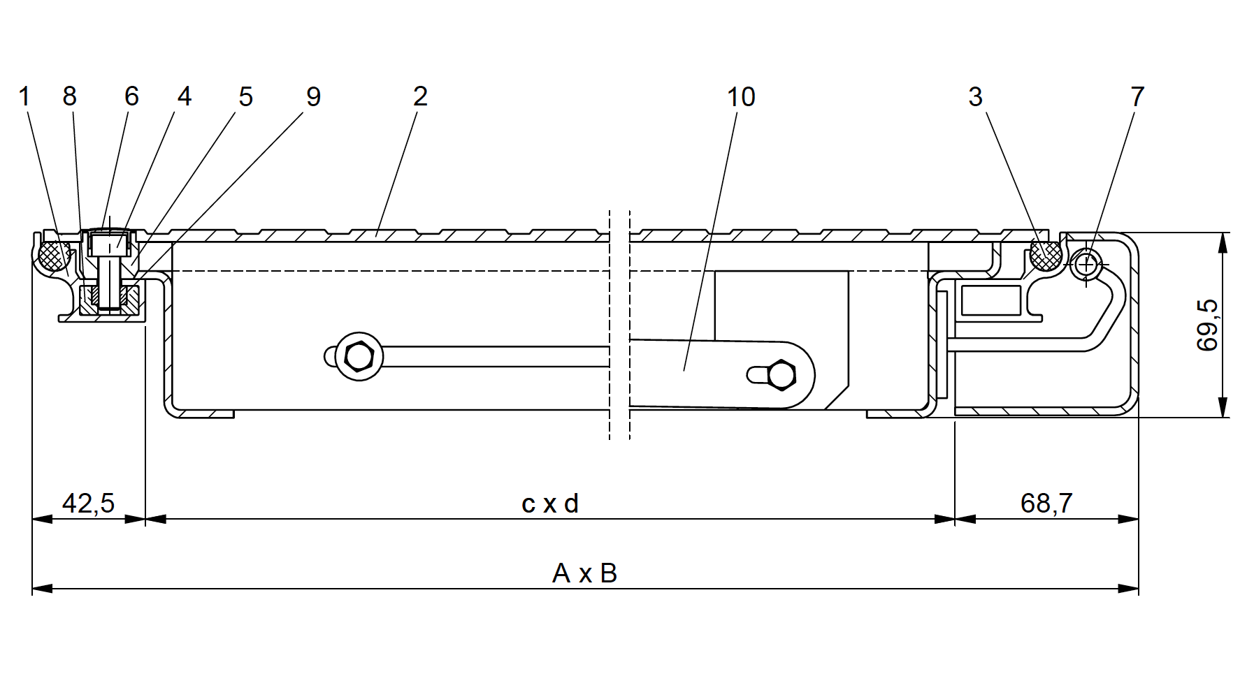 Type HAGODECK CRVA, clear opening ....... x ....... cm. Aluminium, sealed, stainless steel screws. 15 kN (EN 124). Installation shall be according to the manufacturer’s instructions. Manufacturer: HAGO A-4600 Wels, Austria www.hago.at